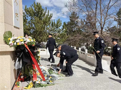 清明寄哀思,英烈永铭记。为深切缅怀革命先烈的丰功伟绩,传承弘扬英烈精神,筑牢全体党员民辅警忠诚担当的政治品格,2026年4月3日上午,在清明节来临之际,科尔沁路派出所党支部联合金桥派出所党支部、乌兰察布东路派出所党支部组织全体党员民辅警前往苏木沁烈士陵园,开展“缅怀革命先烈 筑牢忠诚警魂”主题党日活动,以庄重仪式祭奠英烈、感悟初心,接受红色革命教育洗礼。