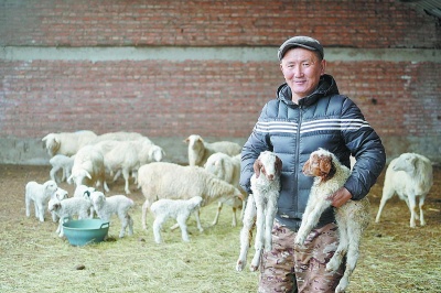 初生的羊羔为牧民带来丰收的喜悦。(摄影:胡民)