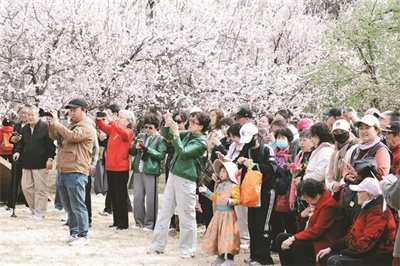 市民打卡乌素图杏花节。(来源:青橙融媒)